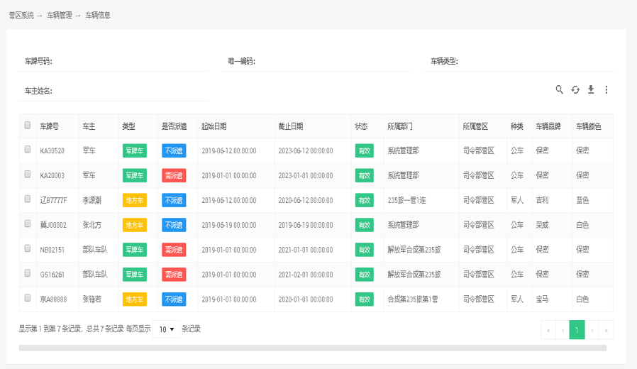 根據軍營對內部車輛的派遣,內部人員請銷假及休假,外來訪客及對外單位和地方車輛進出營區的管理,特開發營區出入綜合管理系統,實現對營區人車進出自動化管理,達到優化管理流程,精確記錄信息,全面掌握動態的基本要求。